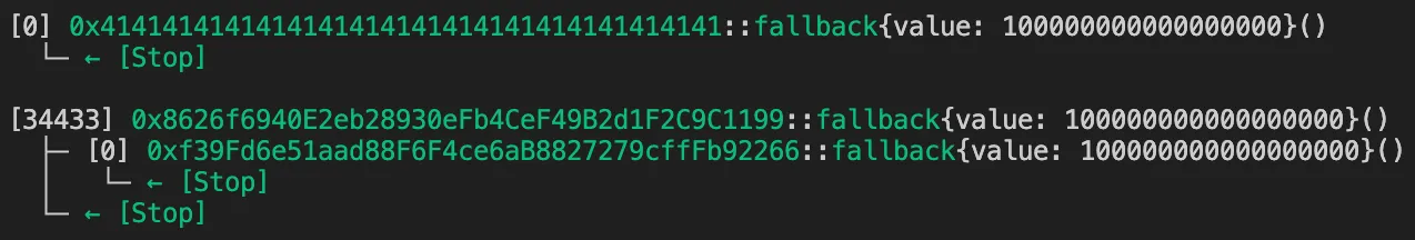 A quick glance at the code reveals that we need 400 WETH, so we have to get it. Although we know the private key, the address doesn’t have any ETH to pay for gas fees, so we first need to send some ETH to it. However, even after sending ETH, the balance stays at 0 — exactly as I intended :). Taking a closer look at the logs, we can see that the ETH is actually being sent to a another address: