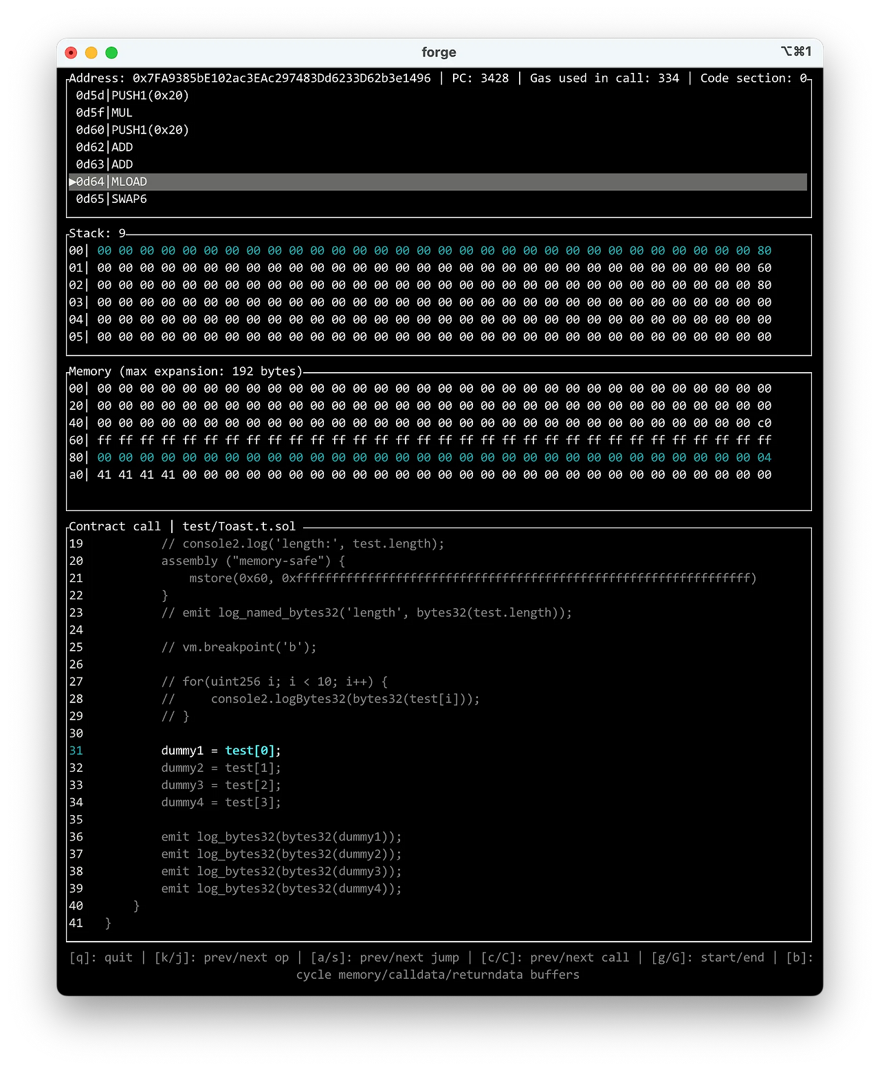 We can also check this using Foundry’s debug and vm.breakpoint cheatcodes.